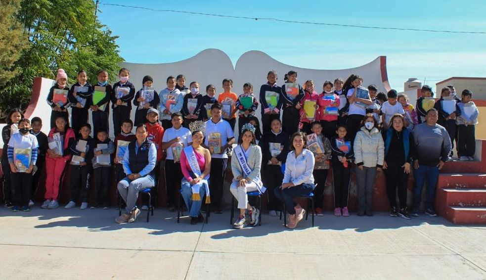 La entrega de kits se realizó en el preescolar “Emiliano Zapata” y primaria “Manuel Doblado” de la comunidad “La Soledad de Arriba”, además del preescolar “Sor Juana Inés de la Cruz” en la localidad “Las Adjuntas”. Cada paquete contiene libretas, libros para colorear, crayolas, colores, juegos geométricos, lápices, entre otros artículos.