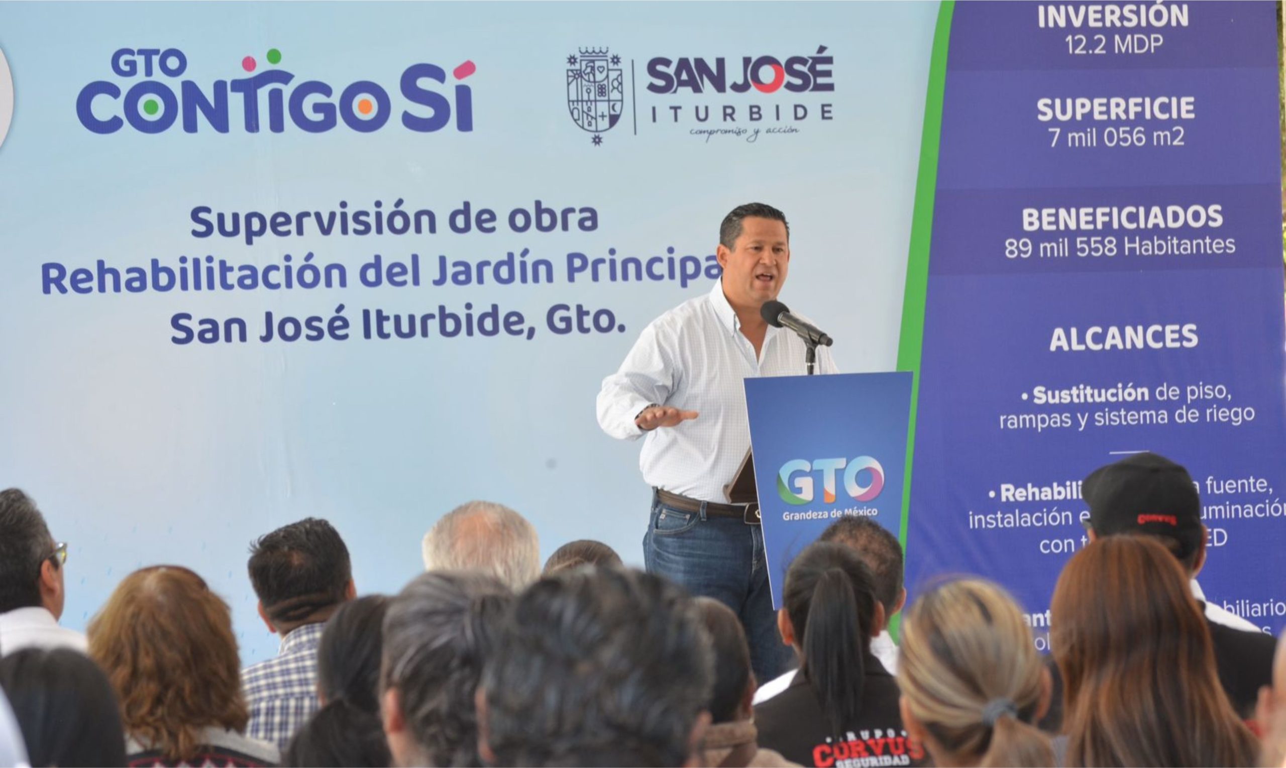 Durante su intervención, el Gobernador dejo en claro que la obra “Tiene que quedar al gusto de la gente de San José Iturbide; nos interesa que San José siga creciendo porque es la entrada de nuestro estado; y vamos a inaugurarlo para la feria, mi compromiso es que en febrero se inaugure; mi compromiso no es solo apoyar a la alcaldesa moralmente, sino con recursos”