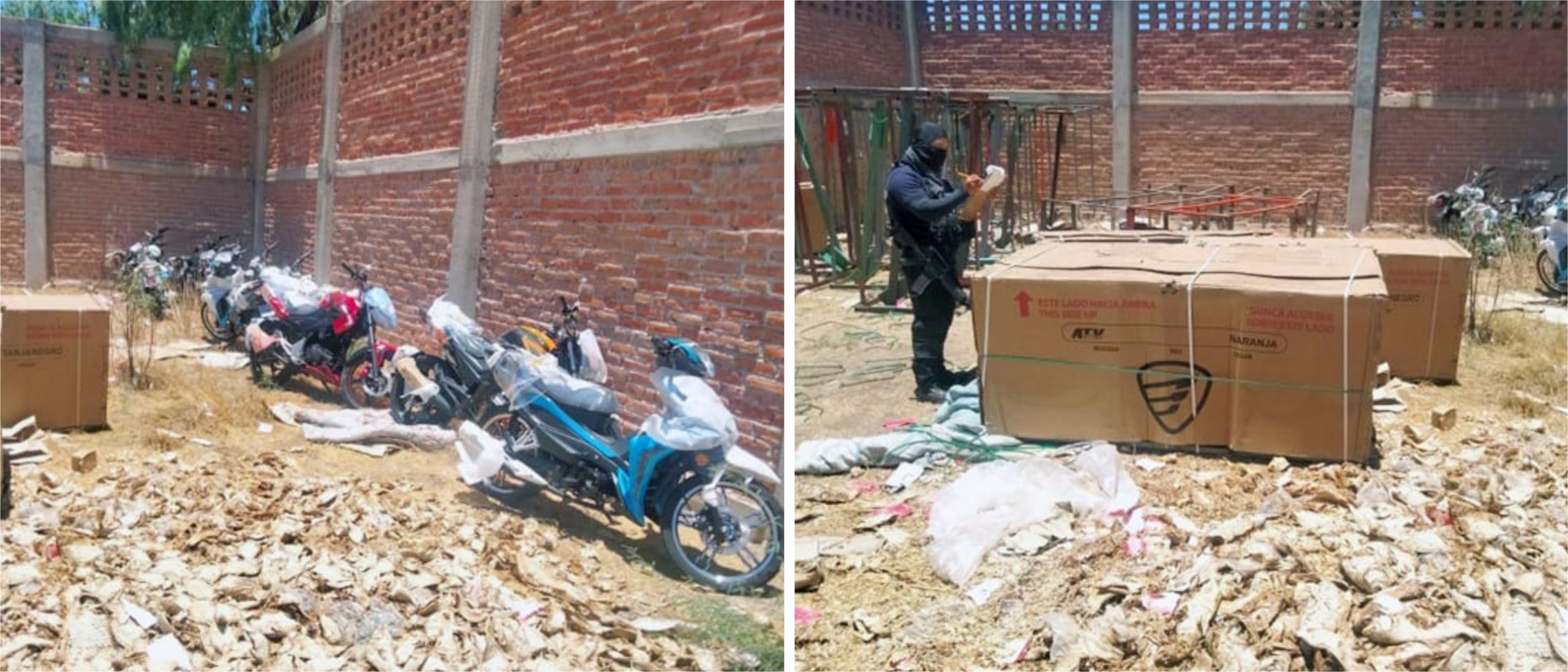 Por lo anterior, el personal operativo de Seguridad Pública se trasladó hasta el lugar indicado por los radio operadores, no encontrando el tractocamión en la construcción en obra negra, pero si una veintena de motocicletas en situación de abandono. Las cuales eran 16 motocicletas armadas, 3 desarmadas en caja, un cuatrimoto en caja y 4 cajas con cascos para motocicleta.