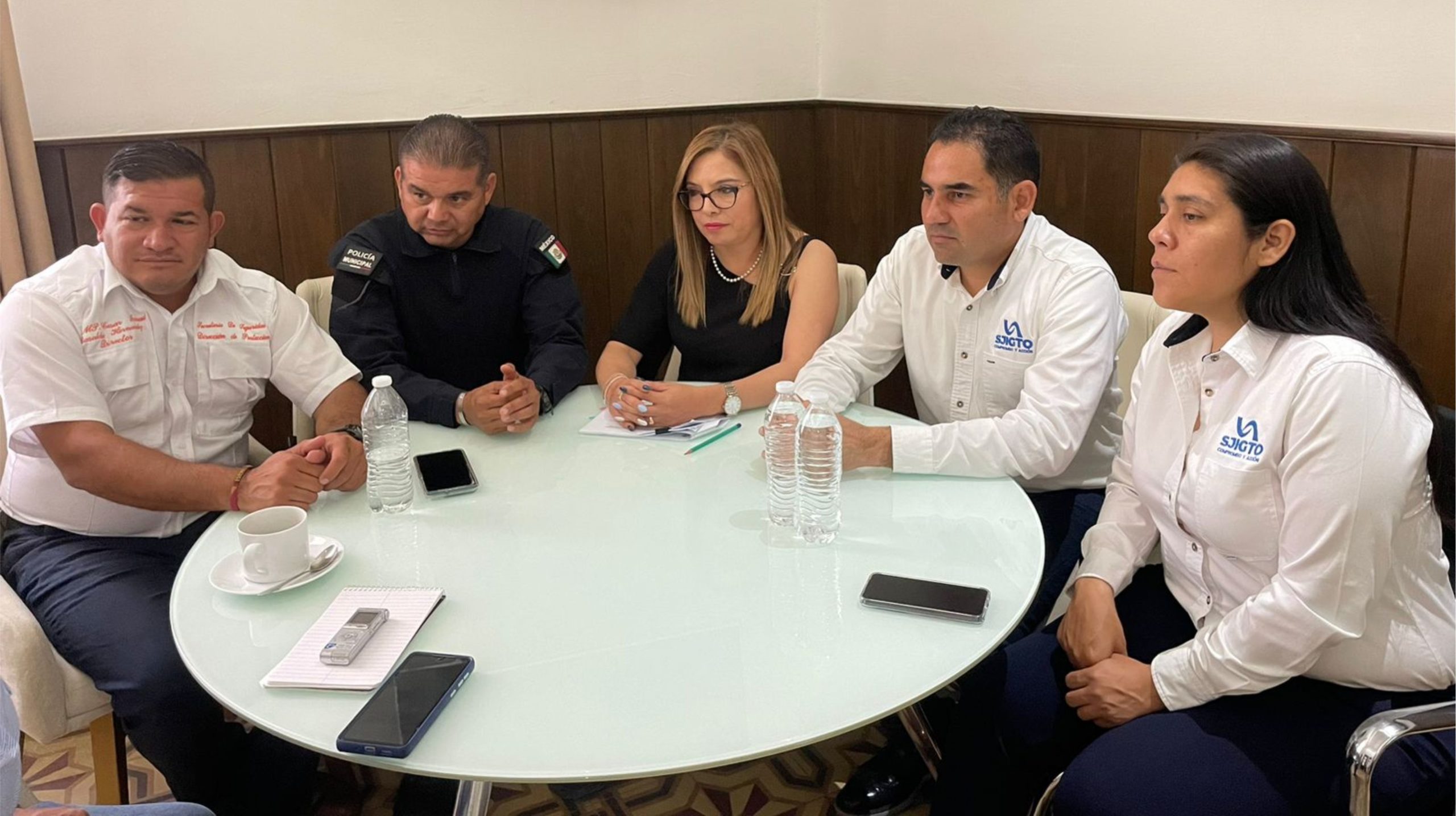 César Basaldúa, Director de Protección Civil, Alonso Rosales, Coordinador de Gabinete Municipal, Rosalva González, Secretaria del Ayuntamiento, Guadalupe Burgueño, Directora del Sistema 911 y Jorge Ignacio Luna García, Director de Seguridad Pública, fueron los funcionarios que atendieron la rueda de prensa.