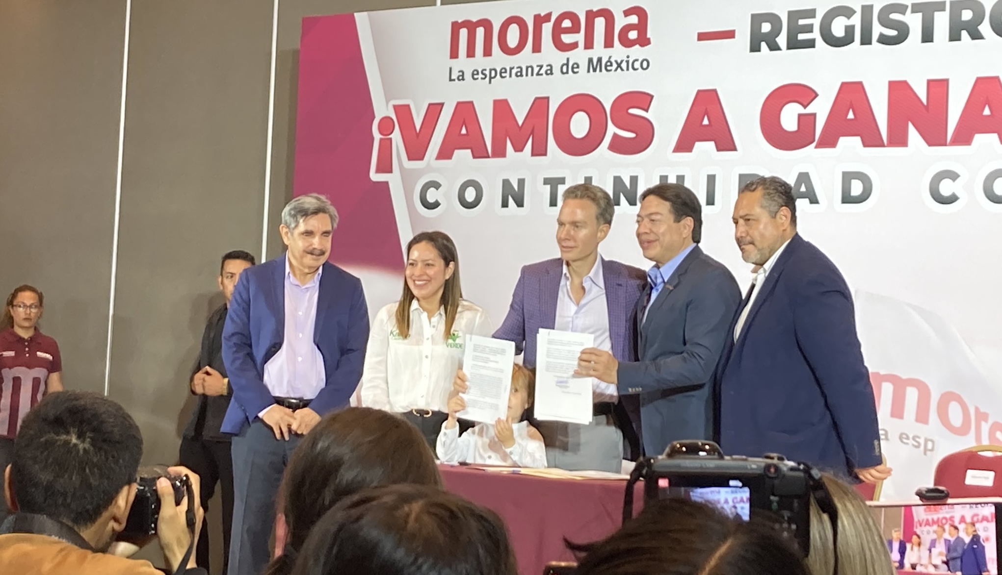 En compañía del presidente nacional del partido, Mario Delgado, Velasco entregó su documentación para poder entrar a la contienda en la que varios personajes políticos buscan llegar al 2024.