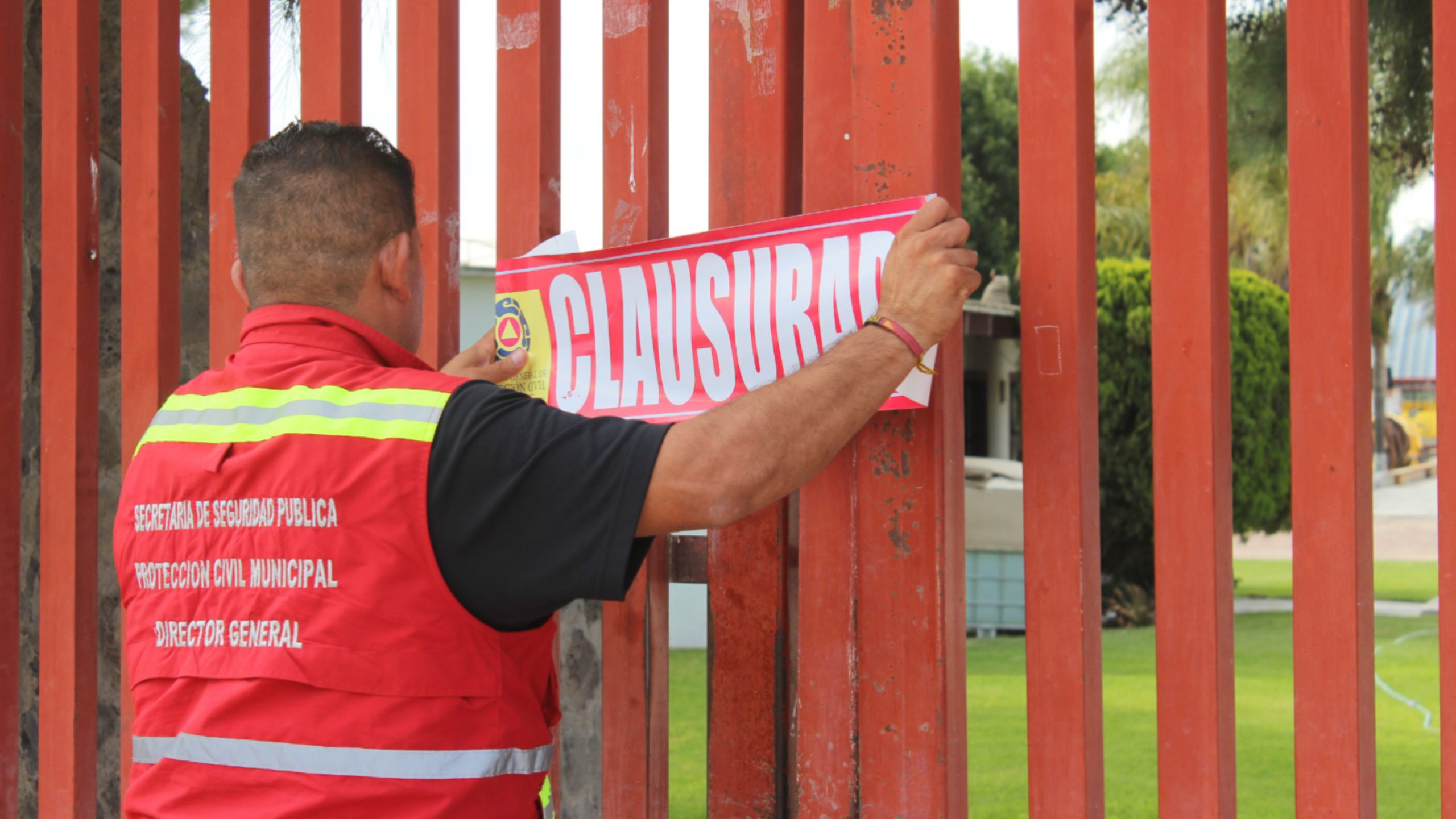 Cerca de las tres de la tarde, el director de Protección Civil, César Israel Basaldúa Hernández, acompañado por personal a su cargo, arribó al sitio para llevar a cabo dicha acción, entrevistándose con personal administrativo y dar lectura al acto de clausura.