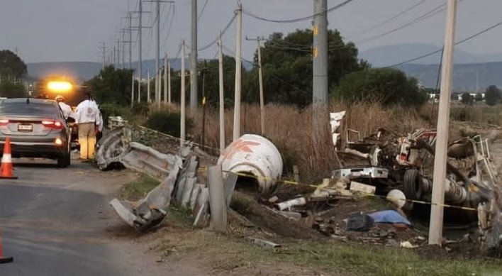 Un trágico accidente se registró la tarde del lunes en la carretera San Miguel de Allende–Querétaro, a la altura de la comunidad El Huizachal, donde un camión revolvedora volcó fuera de la cinta asfáltica, dejando como saldo a un hombre sin vida.